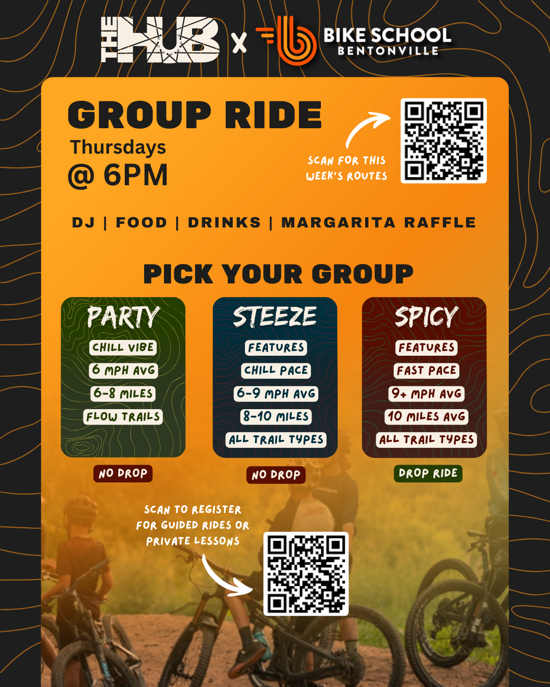 • If the weather isn’t conducive to riding we will cancel the ride but still meet at The HUB for a some fun social vibes.